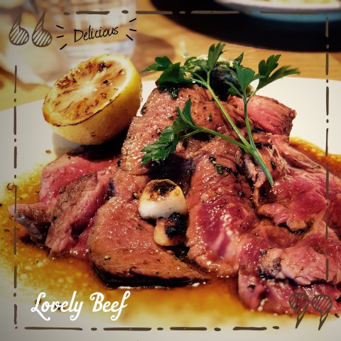 chuck flap steak และแล้วก็มาถึงเมนูเด็ดของเรา (และของร้าน) และนี่ก็คือเมนูที่คุณ! ถ้ามาร้านนี้แล้ว ต้องกินให้ได้ ! เพราะความชุ่มช่ำกับเนื้อแบบมิเดี้ยมแรร์กึ่งสุกกึ่งดิบ บวกกับรสชาติของซอสสองแบบที่มากับเนื้อ ทำให้ได้รสชาติใหม่เข้มข้นที่ผสมกันอย่างลงตัว แล้วยังสามารถบีบมะนาวให้มีรสชาติตัดกับรสชาติเปรี้ยวอีก ต้องบอกว่าเด็ดจริงๆ แถมผักในจานนี้มีการคลุกกับมัสตาร์ด เวลากินนี่ใครจมูกตันๆ นี่โล่งเลย อร่อยสมคำร่ำรือ (จากในเมนูของร้าน 5555) จานนี้เป็นเนื้อหนัก 350 กรัม และราคาจะแพงหน่อย 2980 เยน แต่เชื่อผมสิครับ รสชาตินี่ถือว่าคุ้มกับราคาที่เสียไปจริงๆ