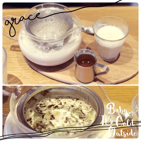 home made chai latte อันนี้แพงขึ้นมาหน่อย เขาบอกว่าเป็นชาที่ใส่เครื่องหอมมากกว่า 10 ชนิด (แอดคิดว่ายัดยังไงลงไปได้ไงหมดนะ5555) รสชาตินี่ไม่เหมือนใครจริง แบบบอกไม่ถูก แต่มันแนวๆ มีกลิ่นเครื่องหอม แล้วเขามีเสิร์ฟน้ำผึ้งให้ด้วย แต่คุณแทบไม่ต้องใส่น้ำผึ้งไปเยอะเลย ด้วยตัวชาที่หวานยุแล้ว เพราะงั้นเพื่อไม่ให้หวานเกินไป ระวังอย่าใส่เยอะล่ะ ราคา 630 เยน (ชาอย่างเยอะกินไม่หมดสักที 5555)