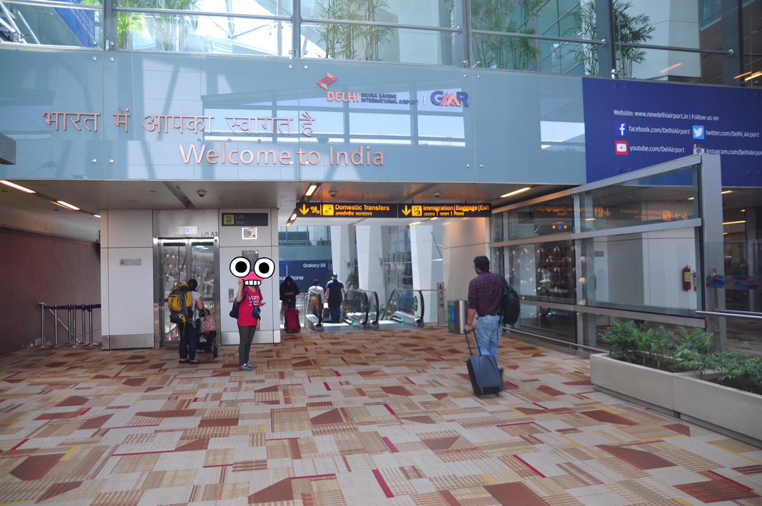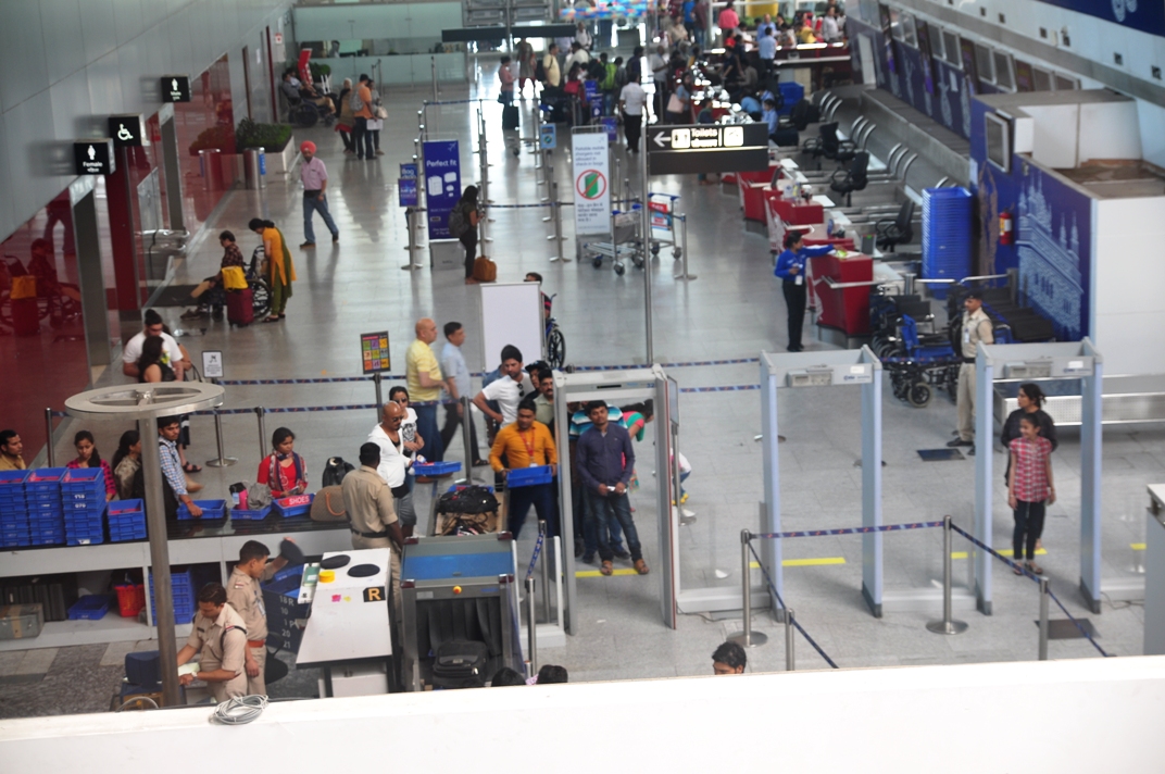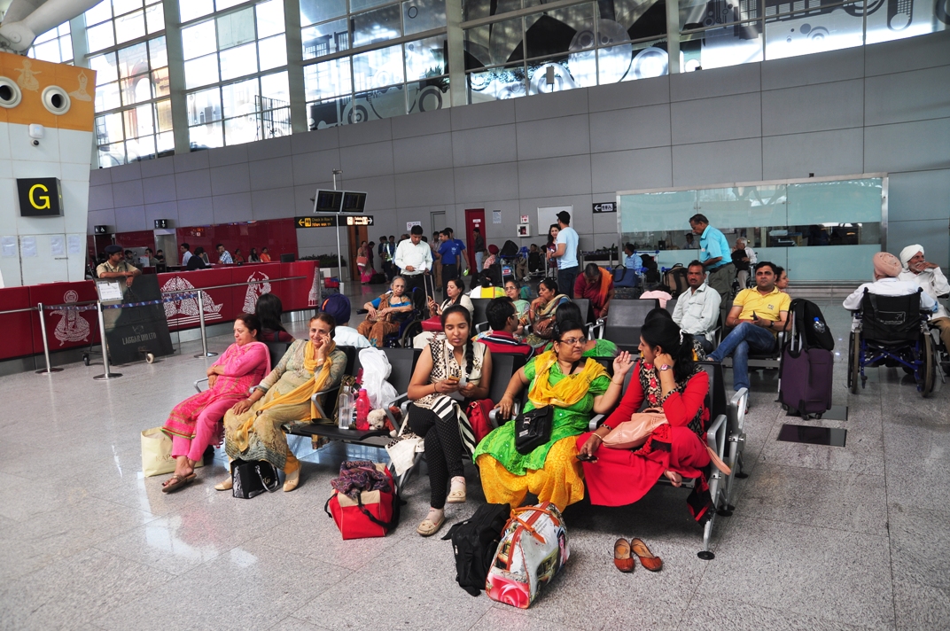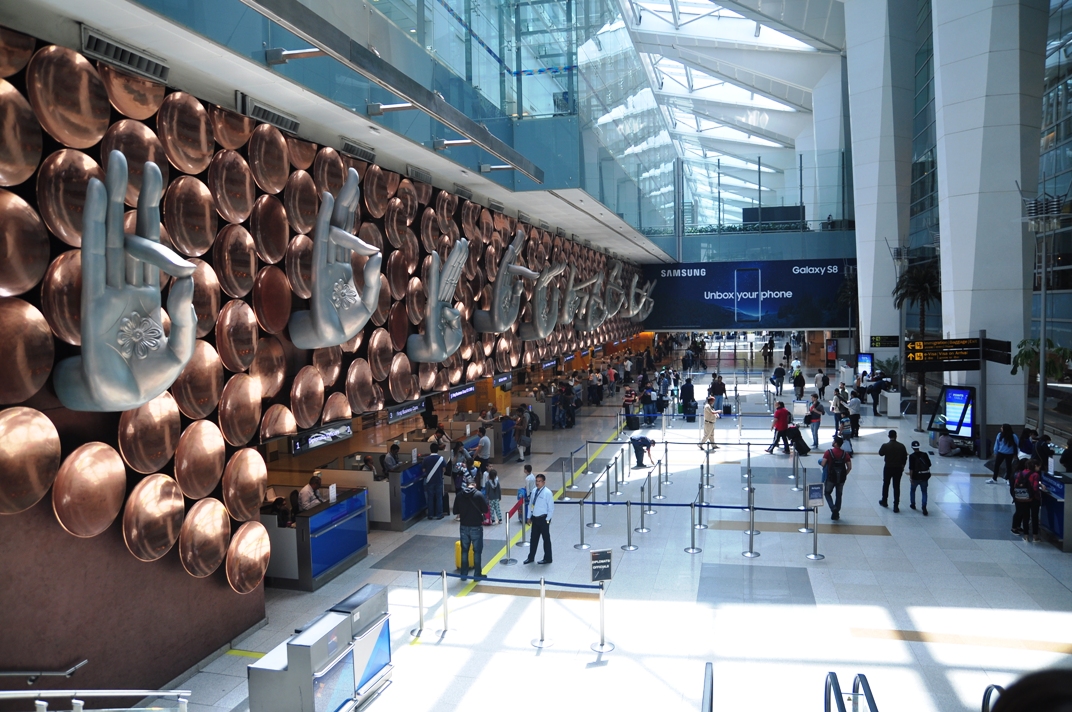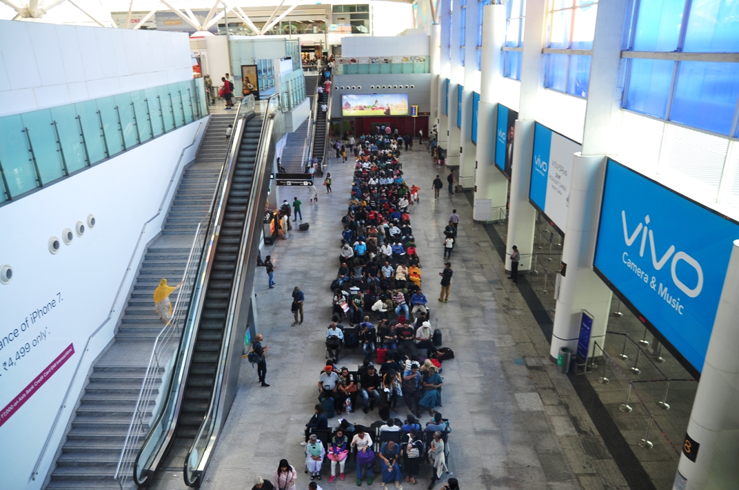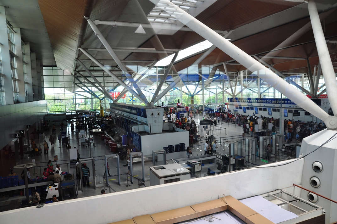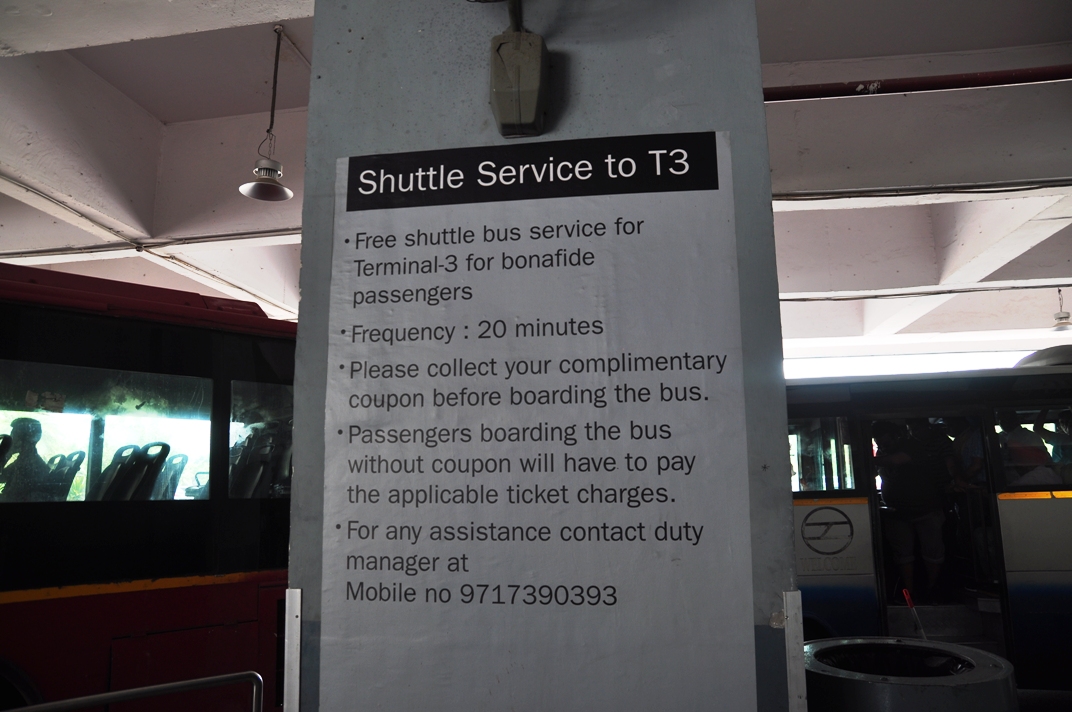 หลังจากขั้นตอนทั่วไป ลงเครื่องแล้ว เข้าคิวผ่านตม ไปเอากระเป๋าสัมภาระเสร็จ ก็ไป Check in สายการบินที่จองไว้ รอบนี้ผมจองของ Indigo Airline เป็นสายการบินในประเทศ แต่ปัญหาคือ Terminal ของสายการบินในประเทศ มันไม่เชื่อมต่อกับสนามบินระหว่างประเทศนี่สิ ทีแรกก็งงๆ อยู่ถามเจ้าหน้าที่เขาบอกแค่ว่า ให้เดินตามป้ายไป Domestic Transfer ไปแล้วต้องไปขึ้นรถบัสอีก Terminal นึงคนละอาคาร ผมนี่งงเลย เพิ่งเคยเห็น Terminal ที่แยกจากกันแบบนี้ สุดท้ายก็เดินตามป้ายไป ออกมาจากประตู แล้วก็หาเจอป้ายจุดรอรถบัสไปส่งอีก Terminal นึง