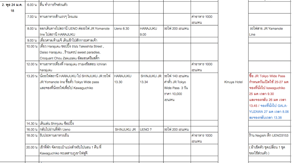 วันที่ 2 ผมแพลนไว้จะเที่ยวตามนี้ครับ ซึ่งจะไปจบที่ Shinjuku ครับ อยากไปดูสถานีที่จะนั่งไปทะเลสาบคาวาพรุ่งนี้ครับ และจะซื้อ Tokyo Wide pass 10,000 Yen วันนี้ครับ และจะจองที่นั่งไปคาวาด้วยครับ (จองสำหรับไป Gala Yuzawa ด้วยเลยดีไหมครับ )