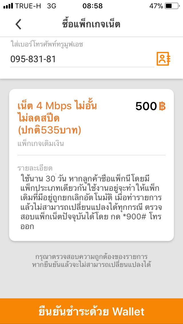 ทำไมซื้อแพ็คเน็นในแอป True Money Wallet ไม่ได้
