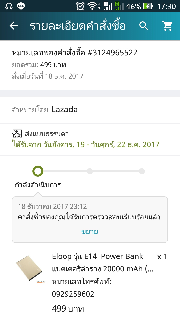 ผู้จำหน่ายเป็นลาซาด้าเองก็ไม่น่าจะช้าขนาดนี้นะ นี่ก็ผ่านมาจะ 10 วันละ เข้าไปดูสถานะการซื้อยังไม่เคลื่อนไหวอะไรเลย กะจะเอาไว้ชาร์จตอนนั่งรถกลับต่างจังหวัด แต่ก็ไม่ทันละ เซ็ง