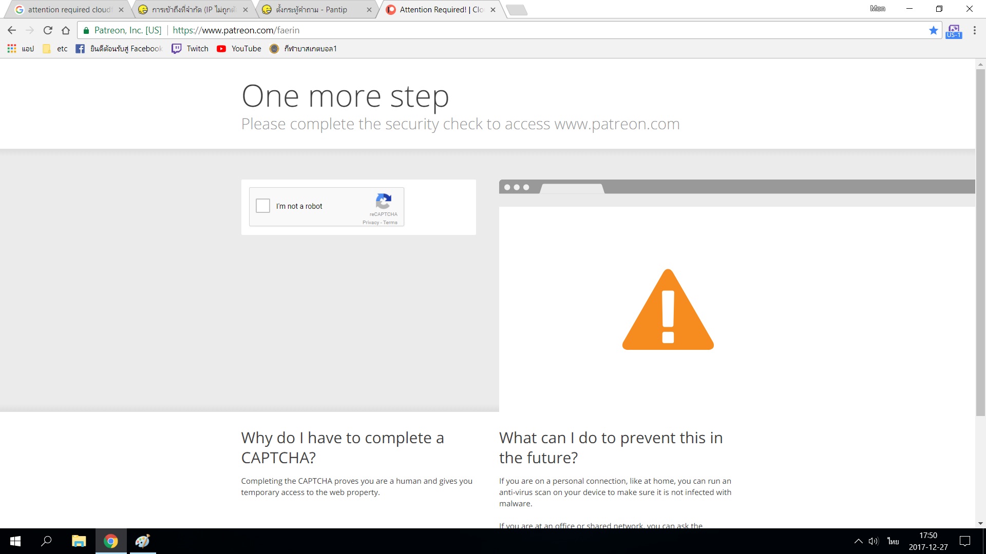 การเข้าถึงที่จำกัด (IP ไม่ถูกต้อง) Facebook , Attention Required ขอวิธีแก้หน่อยครับ