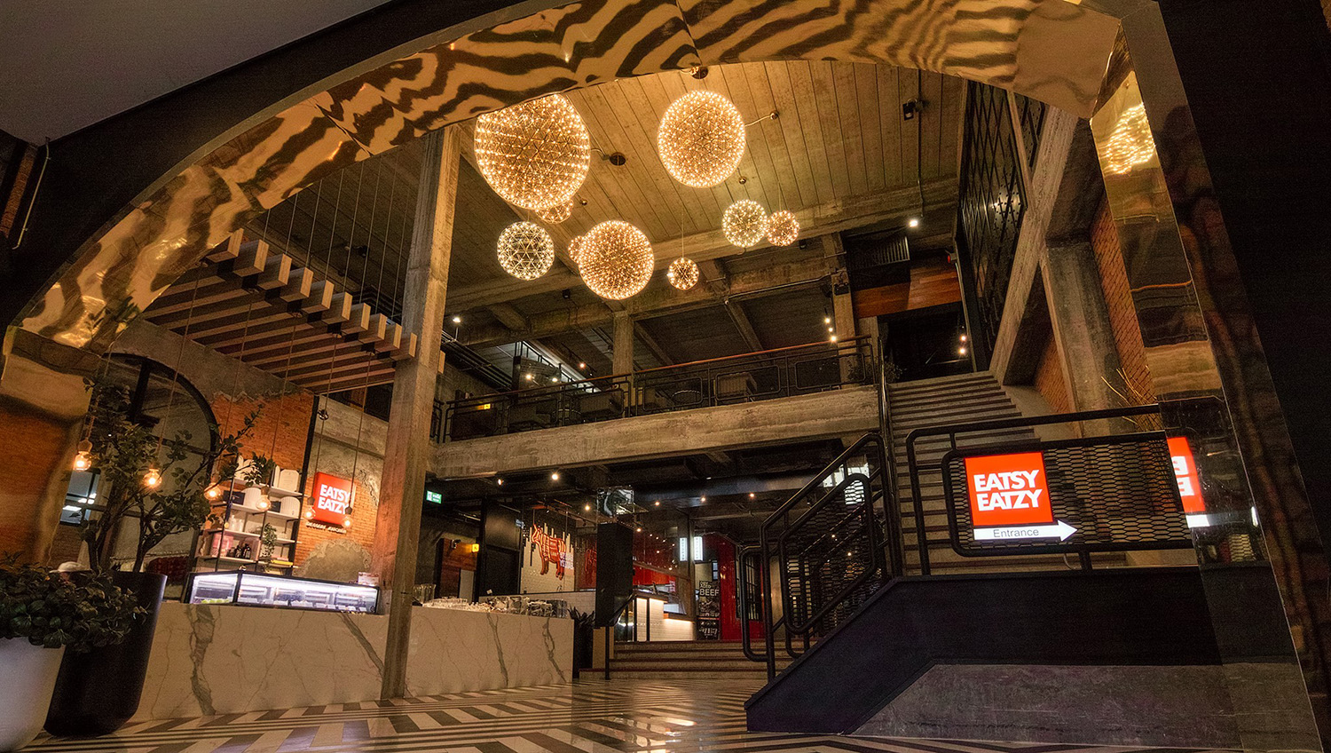บริเวณห้องโถงกลางซึ่งเชื่อมไปยังร้านอาหารและร้านกาแฟรวมไปถึงบาร์ชั้นสาม