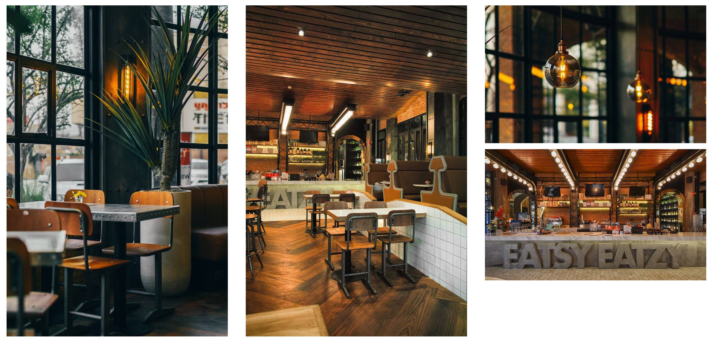 บรรยากาศภายในเป็นความดิบแบบโมเดิร์นอินดัสเทรียล (Modern Industiral Interior Design) การตกแต่งเน้นใช้โครงสร้างเปลือยเช่นท่อเหล็กหรือปูนดิบและเฟอร์นิเจอร์ไม้สีต้ำตาลเข้มในแบบที่พบในคาเฟ่ทั่วไปในพิษณุโลก ถึงอย่างนั้นอีทซี่อีทซี่ก็ยังต่างออกไปบ้างโดยที่มีความเคลื่อนไหวขององค์ประกอบอย่างระแนงไม้ไล่ระดับเพดานด้านบน หรือความโค้งเว้าที่พบได้ตามผนังและมุมต่างๆ สิ่งเหล่านี้ช่วยเกลาความรู้สึกทึมทึบของการออกแบบได้ดี มีเฟอร์นิเจอร์ตกแต่งภายในให้รู้สึกได้ทั้งความย้อนยุคแบบผู้ใหญ่และทันสมัยแบบเด็กๆไปพร้อมกัน การที่ร้านมีขนาดกว้างก็ทำให้เล่นกับสิ่งเล็กๆน้อยๆได้มากโดยที่ไม่รู้สึกสร้างความอึดอัดให้กับผู้เข้ามาเป็นลูกค้ามากจนเกินไป (ถ้าเป็นการตกแต่งในลักษณะนี้กับพื้นที่จำกัดจะต้องมีของน้อยชิ้นและใส่ใจกับดีเทลเล็กๆน้อยๆแทน)