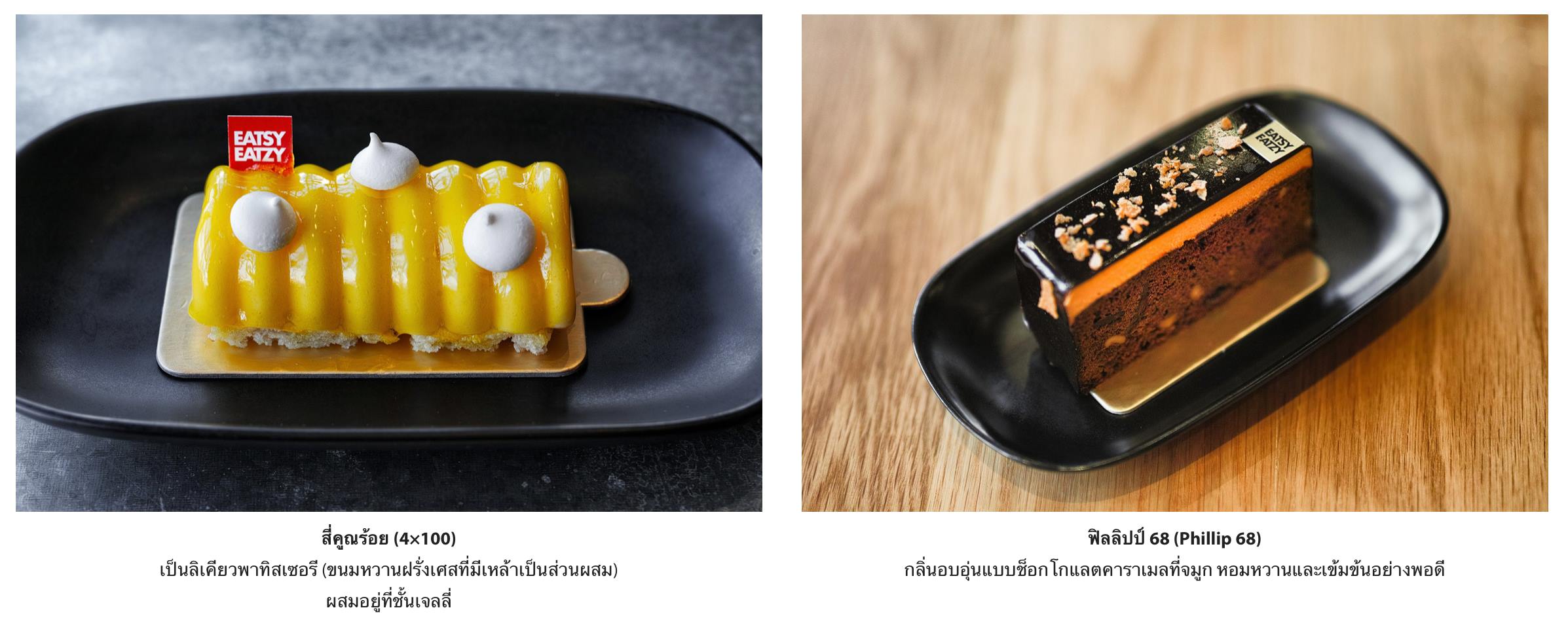 กลุ่มของขนมหวานฝรั่งเศส (Pâtisserie) ของอีทซี่อีทซี่มีฟังก์ชั่นที่เป็นเอกลักษณ์และแสดงถึงความคิดสร้างสรรค์ของเชฟได้ดี แม้ว่าอาจจะทำให้คนรับประทานรู้สึกผิดกับการรับประทานลงไปบ้าง เช่น แอลกอฮอล์หรือส่วนผสมของกาเฟอีนที่มาจากเครื่องดื่มชูกำลังในเจลลี่ของขนมชื่อว่า “สี่คูณร้อย” (4×100) ที่รูปร่างคล้ายสปริงผ่าครึ่งสีเหลืองสดใสเกินกว่าจะคิดว่ามีสิ่งเหล่านี้คอยสร้างเซอร์ไพร์สอยู่ภายใน (น่าจะใช้แสงโสมแทนเหล้ารัม) ถ้าหากว่าใจไม่พร้อมกับสิ่งเหล่านี้ยังมีขนมหวานรูปลักษณ์งดงามยั่วยวนอีกหลายชนิด อย่างเช่นโครงเนื้อที่หนักขึ้นมาพร้อมรสชาติเข้มข้นในแบบของช็อกโกแลตและน้ำตาลไหม้ของฟิลลิปป์หกสิบแปด (Phillip 68) พร้อมเนื้อสัมผัสกรุบกรอบจากเฟยติน (Feulletine) หรือจะเป็นรัสเซียนเทล (Russian Tale) ที่ให้สัมผัสเนื้อมูสเบอร์รี่หวานหอมทรงกระโจมเกลียวสีม่วงเข้ม อย่างที่ไม่มีใครจะกินมันโดยไม่บันทึกภาพเอาไว้