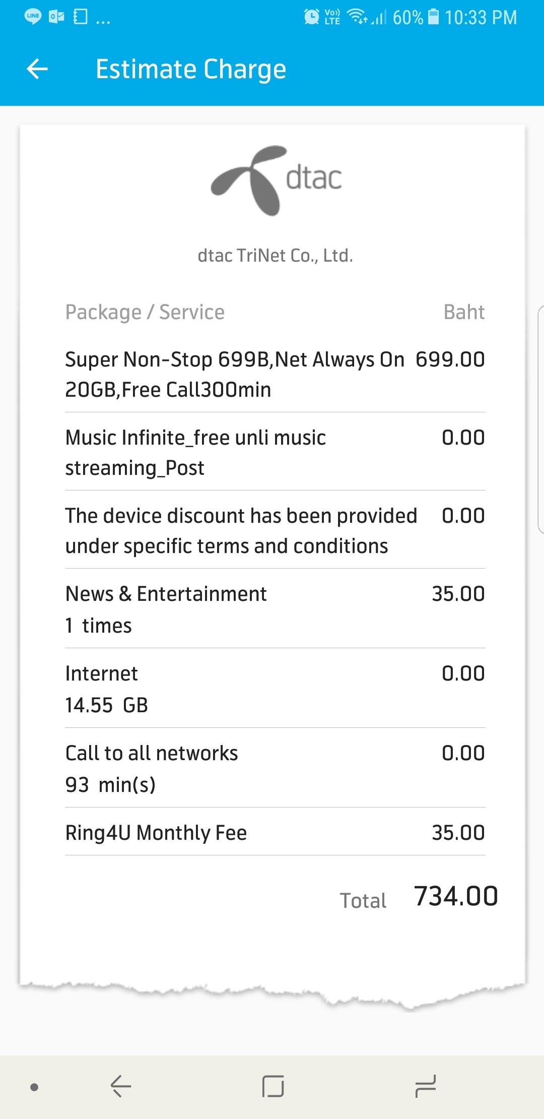 มีการคิดค่าบริการ News & Entertainment เข้ามาในหน้า app dtac