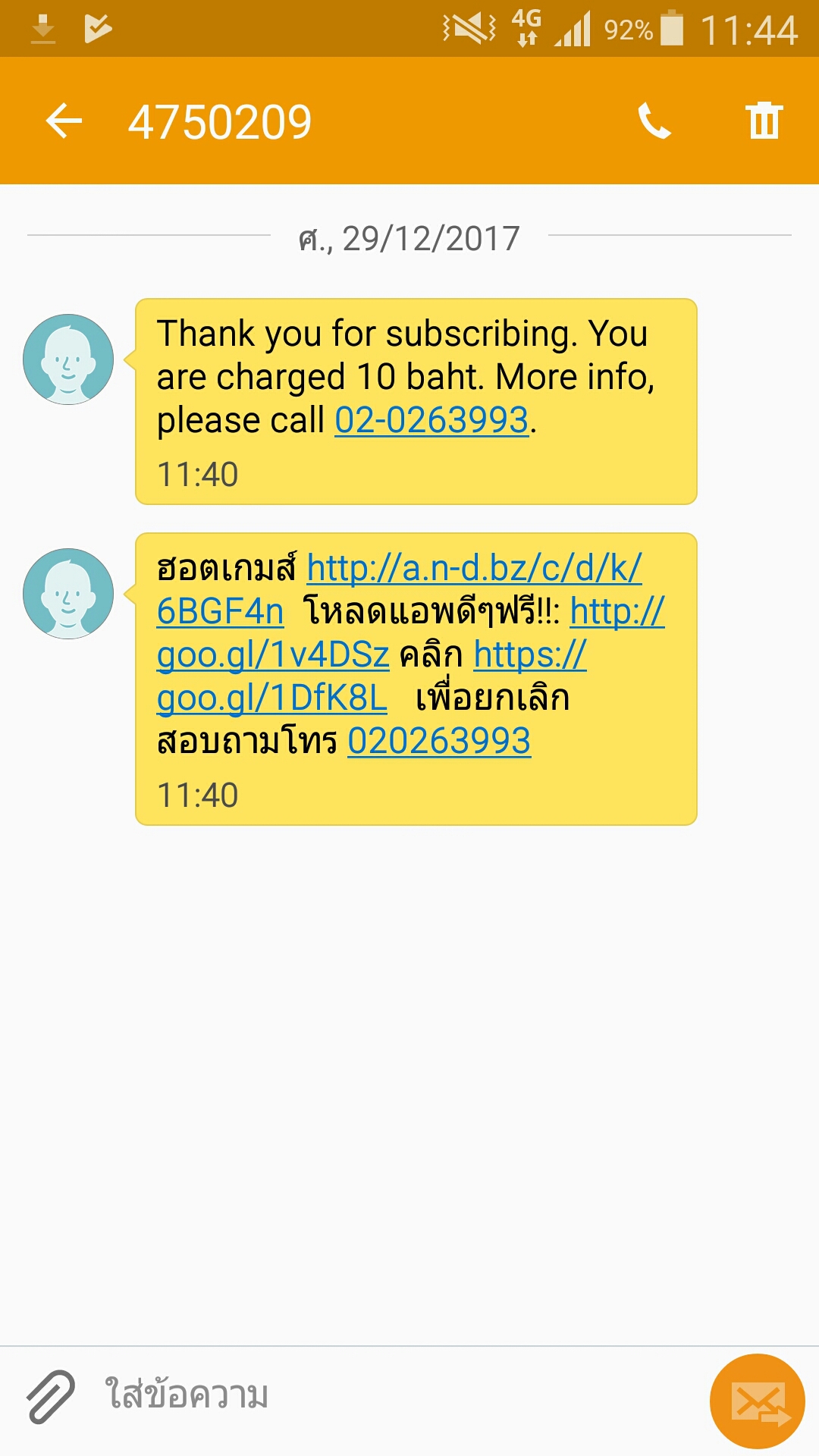 จู่ๆ วันนี้มีข้อความนี้เข้ามาในมือถือเราค่ะ ซึ่งเราไม่เคยไปกดอะไรที่มันเสียตังค์เลยซักครั้ง แล้วอยู่ๆก็มาชาร์จเราไป 10 บาทซะอย่างนั้น คือ ยังไม่ทันได้อะไรเอาไป 10 บาท งงมาเด้อ จู่ๆมาดูดไป 10 บาท ที่เรามาพูดแบบนี้ ไม่ได้งกอะไรนะ แค่เงิน 10 บาท แต่ถ้าไม่เรียกร้องอะไร เกรงว่ามันจะมาเป็นพรวน รบกวนหน่อยจ้า