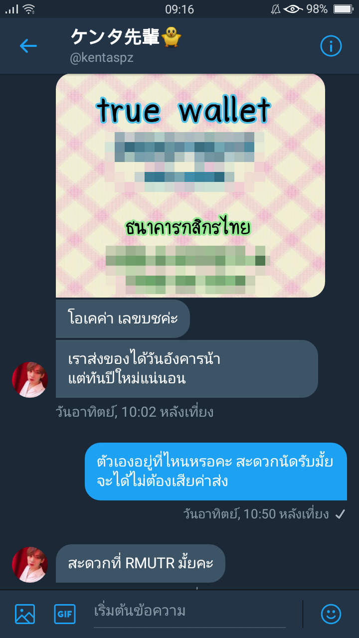 แต่อีกวันกดเช็คปรากฏว่าของส่งไปที่รังสิต เราก็ถามคนขายไปว่าแทรคเราอยู่ไหน ก็ไม่อ่านเลยค่ะ ไม่ตอบอะไรเลย แอคก็ล็อค เราเลยโทรเข้าไปที่เบอร์ wallet มีคนรับค่ะ คุยกับเจ้าของบัญชีเรียบร้อยได้ข้อสรุปว่า คนที่เป็นเจ้าของบัญชีไม่เกี่ยวข้องด้วย เป็นแม่ค้าคนนึงเหมือนกัน แต่กลอุบายที่ใช้คือ ทำทีว่ามีของมาขายแล้วเอาเลขบัญชีของแม่ค้าคนอื่นที่เขาไปซื้อของด้วยมาให้เรา พอเราโอนไป เค้าก็ไปบอกกับแม่ค้าเจ้าของบัญชีว่ามีการโอนเงินเกิน ช่วยโอนส่วนต่างคืนที่เบอร์ wallet นี้ได้ไหม