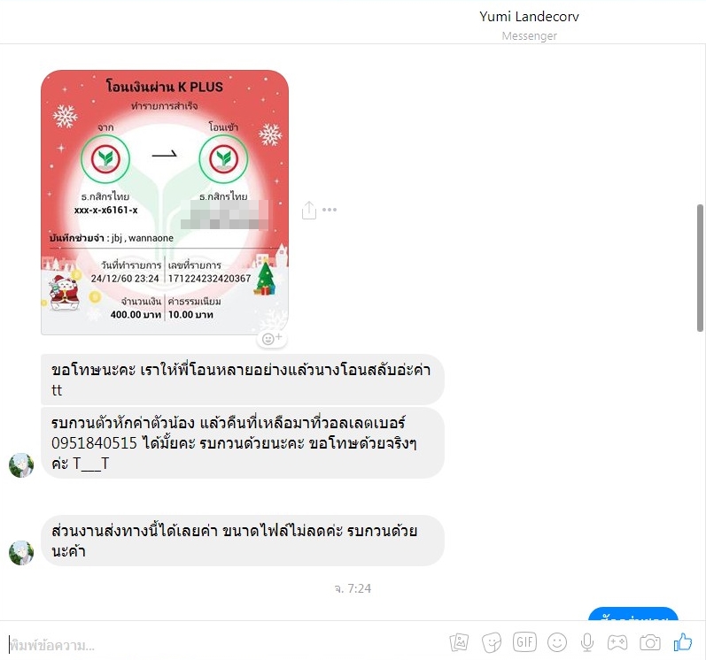 วันนี้เราจะมาเล่าเรื่องของเราให้ฟังนะคะ เราเป็นติ่งค่ะ ก็ซื้อของออนไลน์มาตลอด อีกทั้งเราก็ยังขายของออนไลน์อีกด้วย ตลอดระยะเวลาหลายปีที่ผ่านมาในชีวิตการเป็นติ่ง ไม่มีปัญหาค่ะ สบายมาก จนมาวันที่ 24 ธันวาคม