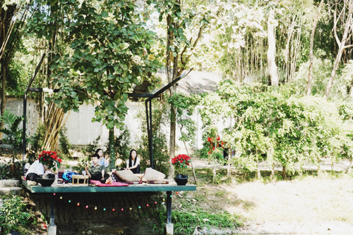 ปกติก็จะเป็นบ้านสวน มีลานกว้าง ขายของน่ารักแฮนด์เมด และร้านกาแฟ แต่วันนี้ที่เรามามีอีเว้นท์ "SAWASDEE CRAFT #3" โดยจะต้องเสียค่าเข้า 50 บาท แต่ว่าจะสามารถเล่นเกมได้ 2 เกม และหากเดินครบเป็นกิจกรรม Walk Rally เดินไปปั๊มจุดครบ จะได้ของรางวัล เราไปช่วงสายๆ คนไม่เยอะมาก ส่วนใหญ่จะเป็นเสื้อผ้า กระเป๋าและเครื่องประดับ ราคาก็ค่อนข้างสูง เครื่องประดับ 120+ เสื้อผ้าที่แอบเล็งไว้ 2900+ เชียวค่ะ อาหารก็จะมีทั้งอาหารเกาหลี ลูกชิ้น น้ำผลไม้ และถ้าเดินไปทางด้านขวาจะมีร้านชาเล็กๆ ที่ใช้เวลาชงนานมากกกกกกก แต่น่ารักและรสชาติดี ราคาแค่เหยือกละ 50 บาทเท่านั้น ใช้เวลาอยู่ที่นี่ประมาณ 1 ชั่วโมง เดินวนก็นั่งพัก ถ้ามาตอนกลางคืนรู้สึกจะมีหนังกลางแปลงด้วยค่ะ ตรงกลางลานกว้างเขาทำเป็นอัฒจรรย์แบบพื้นดินนั่งลึกลงไป น่ารักมากๆ ค่ะ
