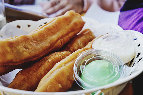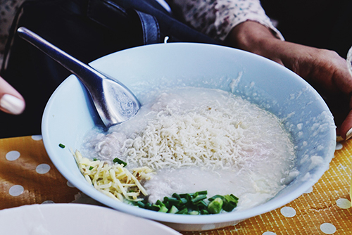 เริ่มต้นที่ โจ๊กศรีพิงค์ เราก็ไม่รู้หรอกค่ะว่าคนนิยมไป พอดีไปเช่ามอไซค์แล้วเจอ หิว เลยจอด โต๊ะมักว่างให้แก๊งค์สาวสวยเสมอ ในร้านมีโจ๊กให้เลือกเยอะมาก ทั้งข้าวต้ม ปลา หมู กุ้ง เห็ด และตามใจสั่งมา รวมทั้งปาท่องโก๋ยักษ์ถาดละ 40 บาทมี 4 ชิ้น พร้อมนมข้น สังขยา ถือว่าก็จัดเต็มในมื้อแรกและอิ่มหนำพอสมควร
