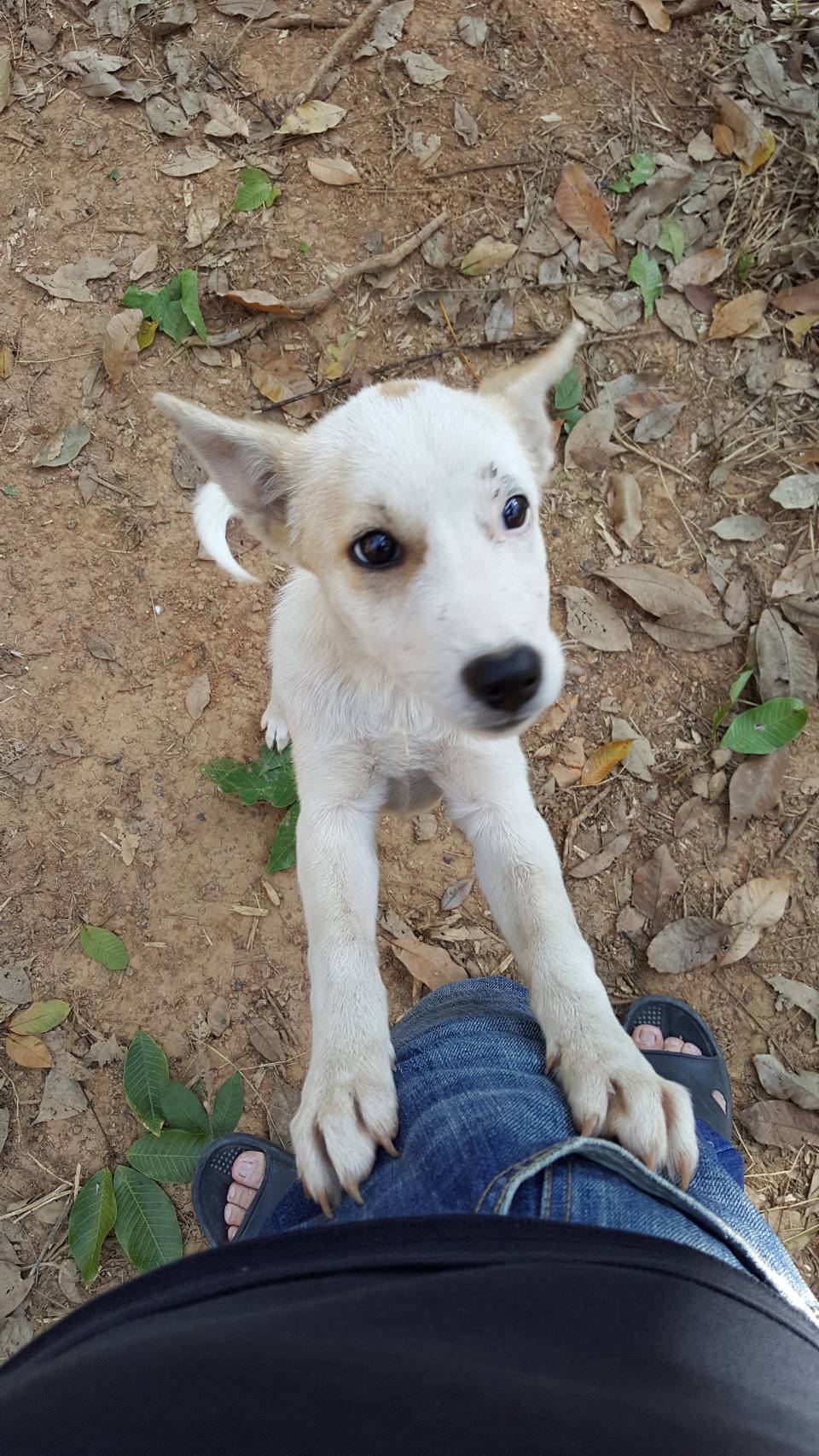 พอดีวันก่อนไปสวนที่บ้านต่างจังหวัด เจอน้องหมาที่มีคนมาปล่อยทิ้งไว้ค่ะ เห็นว่าน่ารัก ดูฉลาดดี เลยจะเอามาเลี้ยงที่บ้านกทม.ค่ะ