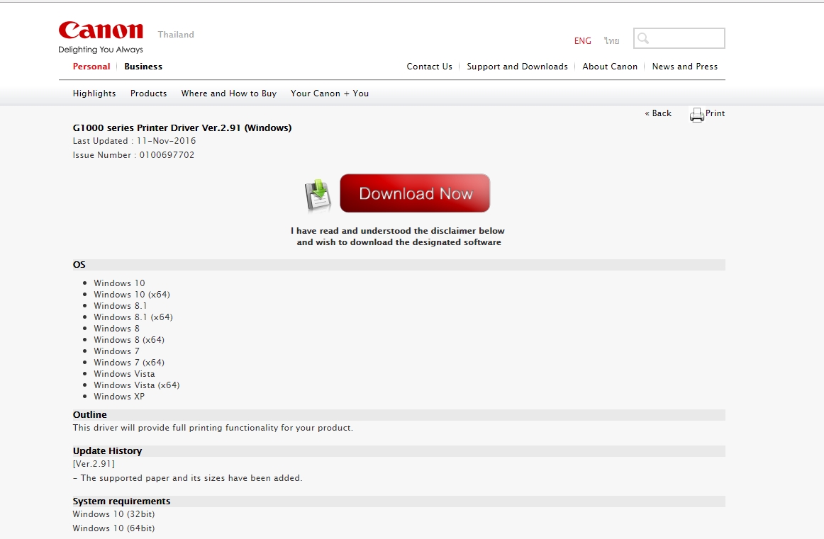 ติดตั้งไดรฟ์เวอร์ Printer Canon Pixma G1000 ไมไ่ด้