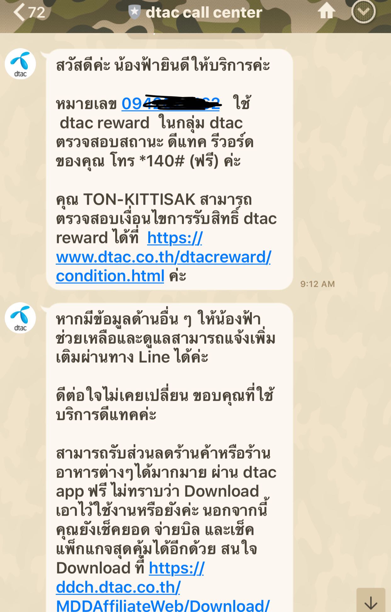 การรับสิทธิ์ dtac Reward ครับ