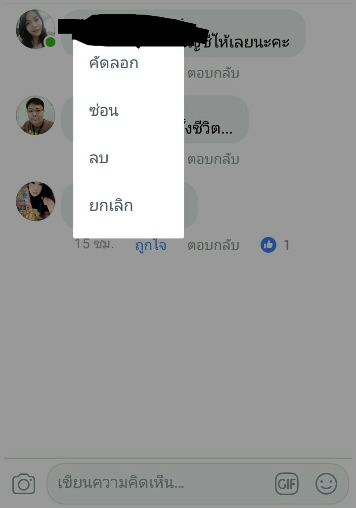 ถ้ากดคำว่า..ซ่อน ในข้อความหน้าคอมเม้นท์ Facebook อยากทราบว่าผลที่ได้มันเป็นยังไงครับ