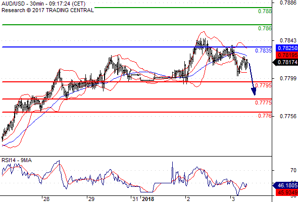 จุดที่ต้องการ: สถานะขายต่ำกว่า 0.7835 เป้าหมายต่อไปที่ 0.7795 และ 0.7775