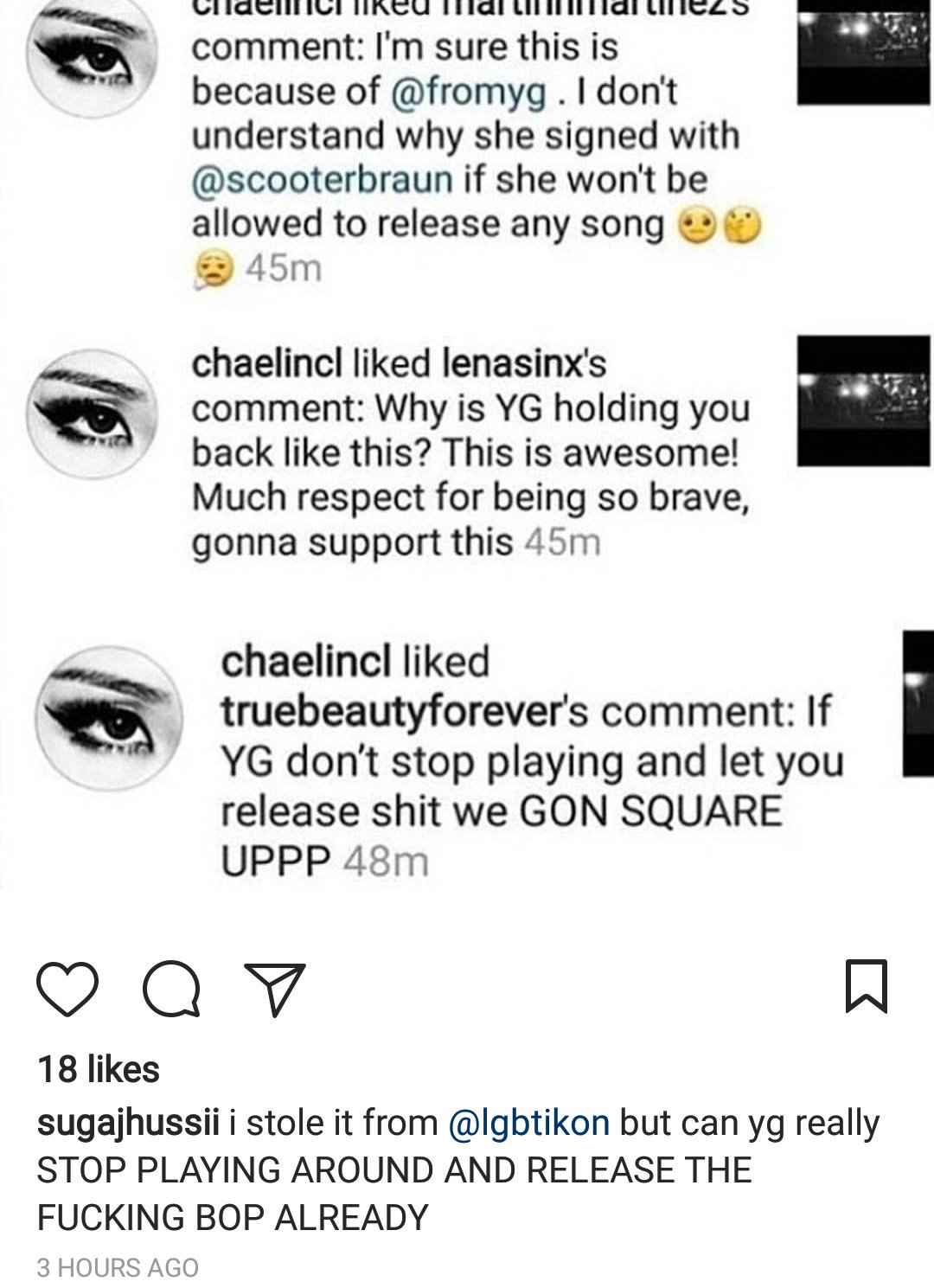 สงสารแอ๋วมากคงอยากจะปล่อยเพลงของตัวเองให้แฟนคลับได้ฟัง เมื่อวันปีใหม่แอ๋วลงคลิปเพลงใหม่ของตัวเองพร้อมจดหมายค่ะ จขกท.เคยตั้งกระทู้ไปแล้วค่ะ แฟนๆเลยเกิดความสงสัยว่าทำไมล่ะ? ใครกันที่ไม่ปล่อยMVของคุณ ดูเหมือนว่าแอ๋วจะแอบคอนเฟิร์มว่าคือ yg สงสารศิลปินนะทำงานออกมาก็อยากให้คนได้ดูได้ฟัง