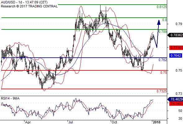 จุดที่ต้องการ: สถานะซื้อสูงกว่า 0.7620 เป้าหมายต่อไปที่ 0.7890 และ 0.8000