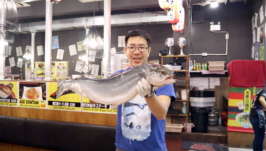 แต่ก็ไปถือนะ เออ ถือทำไมวะ ฮ่าๆๆ แต่ปลาตัวใหญ่ดี พึ่งเคยถือปลาแซลม่อนเป็นตัวๆครั้งแรก