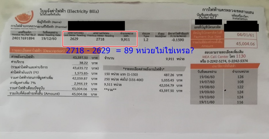 เป็นอุทาหรณ์ ทีหลังต้องคอยตรวจสอบใบแจ้งหนี้ไฟฟ้า เห้อ