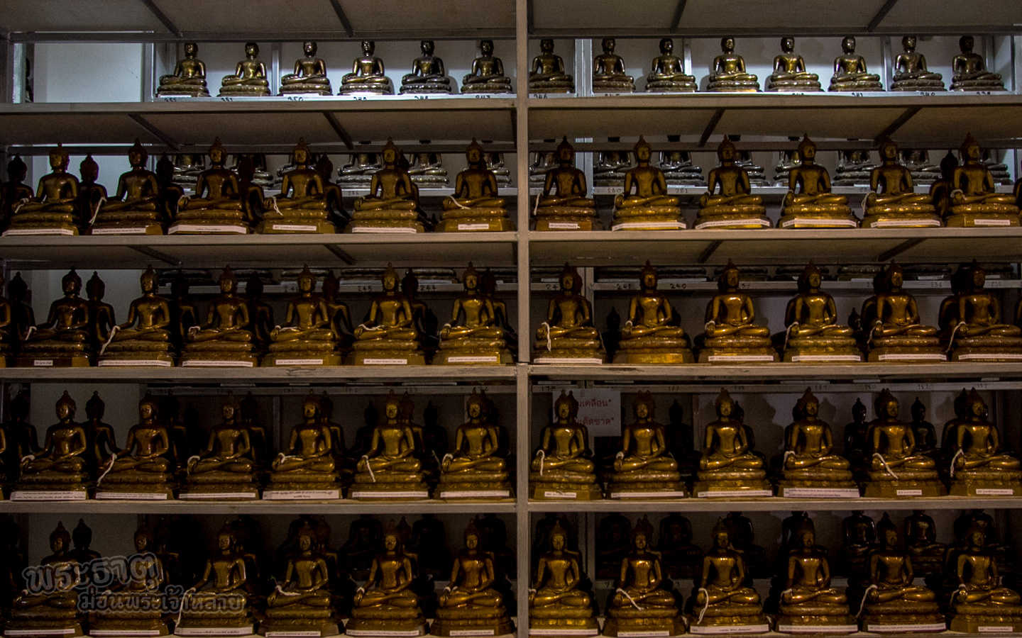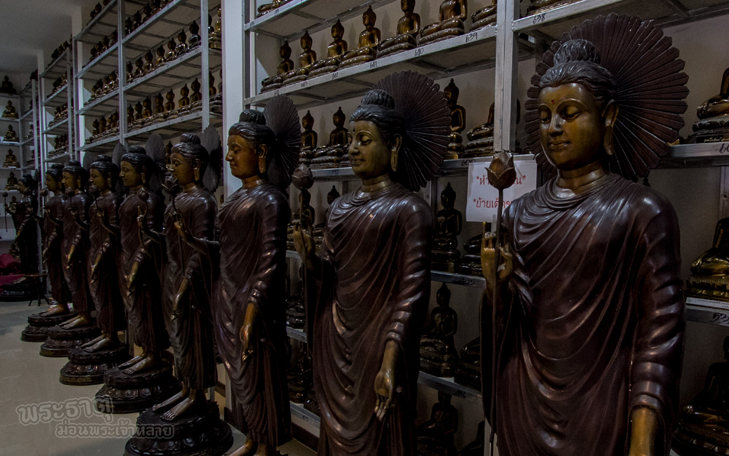 พอเดินมองไปรอบ ๆ ผมก็พบพระพุทธรูปจำนวนมากครับ จากป้ายที่เขียนไว้ว่าเราสามารถทำบุญจำนวน xxxx บาท จะได้พระพุทธของเราไว้ตั้งประดิษฐานไว้ที่เจดีย์แห่งนี้โดยรอบ (ผมว่ารูปแบบดูคุ้น ๆ อยู่นะ 5555 เอาเป็นว่าเราไม่สนใจ มาโฟกัสเกี่ยวกับสถานที่ดีกว่าเนอะ)