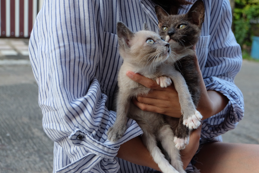 เด็กๆเป็นลูกของแมวจร ที่คุณยายเก็บของเก่าบริเวณนั้นพามาดูแลในกรงชั่วคราวเนื่องจากมีรถเข้า-ออกตลอด กลัวถูกรถทับทั้งแม่แมวและลูกแมว