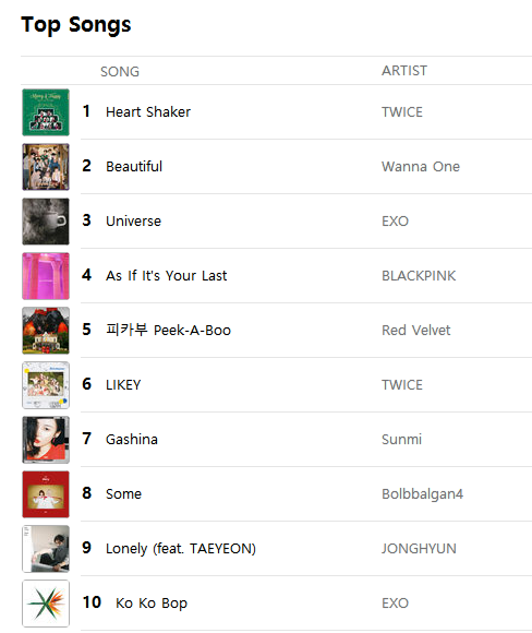 [K-POP] รายงานชาร์ต Top 10 K-POP Songs Apple Music & iTunes Store Thailand (5-Jan-18)