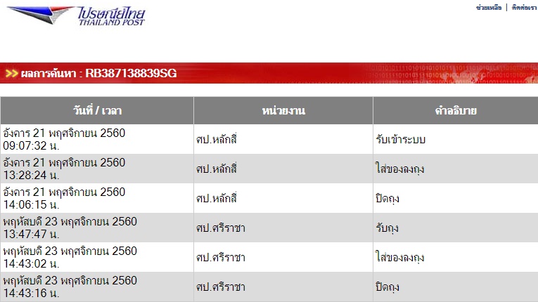 จนของที่มาทีหลังกลับได้รับก่อนจึงได้แจ้งไปรษณีย์ไทยไป ก็ได้รับคำตอบว่า ให้ทำเรื่องสืบสวน