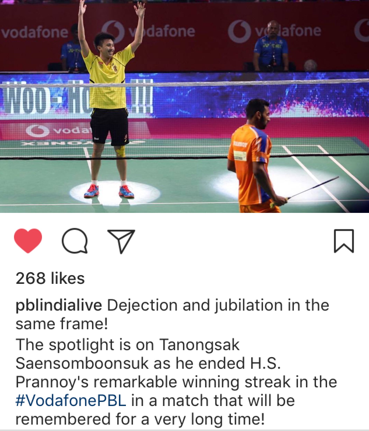 รายการ PBL แบดมินตันลีกอินเดีย Season 3, ตอนเชียร์สด ตื่นเต้นมากกกก.. เกม 3 ปรานนอย (ผู้ไม่เคยแพ้ใครใน PBL ตลอด 3 ฤดูกาล) ขึ้นนำ 3 แมทช์พ้อยท์ สองก็ยังไม่ถอดใจ ค่อยๆ ไล่มาเรื่อยๆ.. แต้มตัดสินนี่ลุ้นแบบหยุดหายใจกันไปเลย 555 *** ต้องดูครับ *** วัดกันที่ใจล้วนๆ ชื่นชมสองจริงๆ