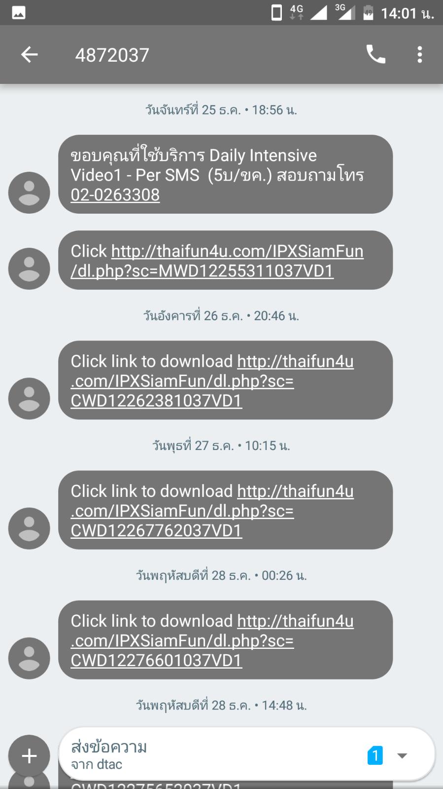ตรวจพบ โดนเก็บค่าบริการ CONTENT SMS จาก dtac โดยที่ไม่เคยสมัคร