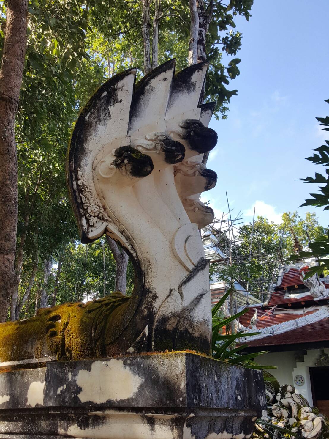 เหลียวมองพญานาคที่อยู่ด้านข้าง เห็นมีเขี้ยวด้วย เห็นแล้วว่าดุกว่าพญานาคในวัดไทยพุทธทั่วไป ดูการก่อสร้างแล้ว คล้ายศิลปะเขมร