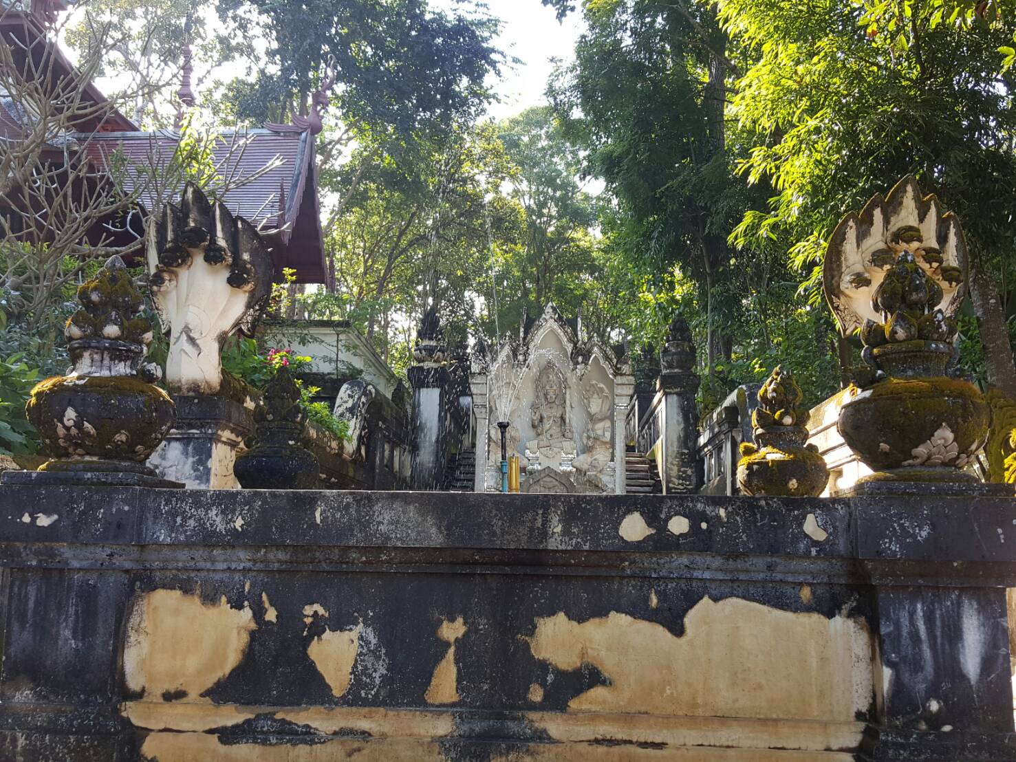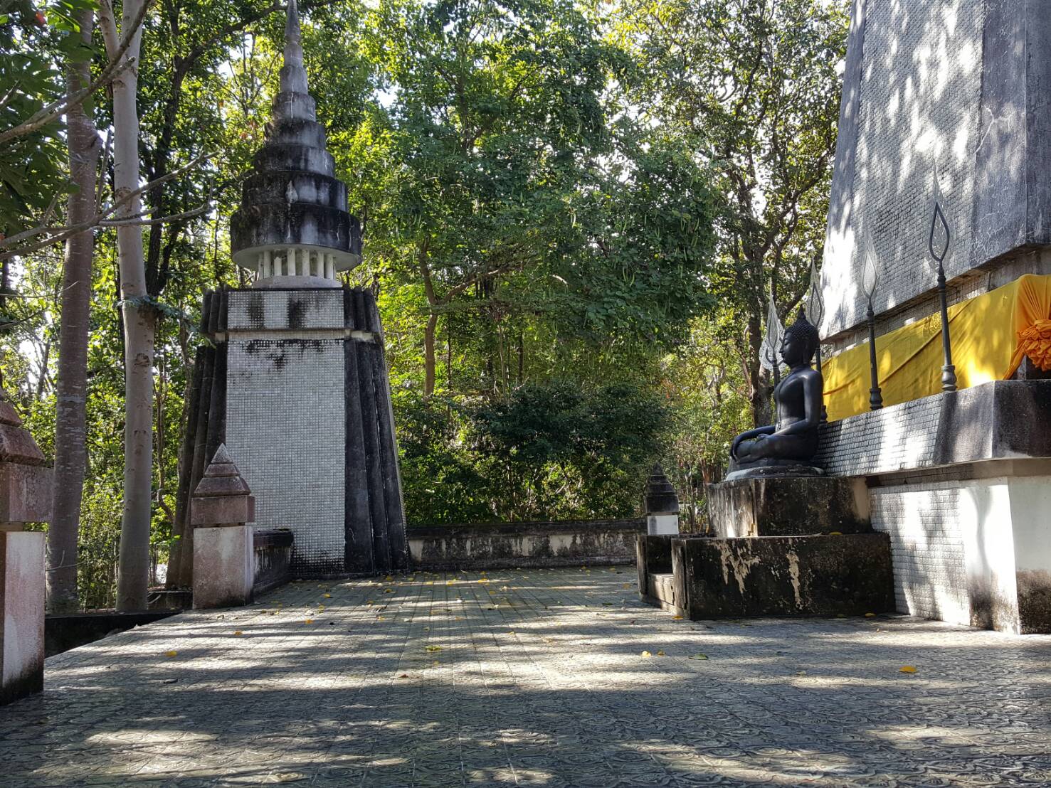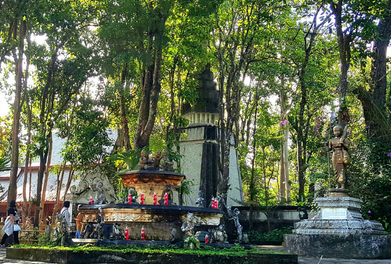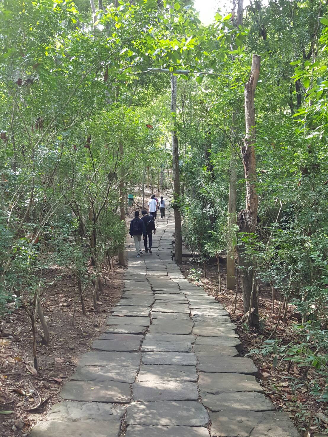 ไหว้พระ ถ่ายรูปแล้ว ก็เดินไปด้านหลัง เดินตามๆกันไป ปรากฏว่ามีทางเดินอีกยาว ระหว่างทาง ทั้งทางซ้ายและทางขวา มีอาคารเช่น โบสถ์เดิม กฏิพระ ตั้งอยู่ แทรกอยู่ในต้นไม้ใหญ่จำนวนมาก คล้ายๆอยู่ในป่า
