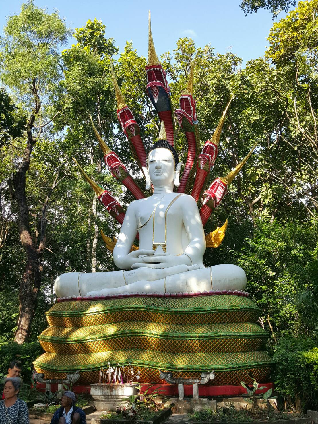 มองไปทางขวาพบพระพุทธรูปขนาดใหญ่ มีนาคปรก 7 เศียร เศียรแยกกันเป็นอิสระ นี่ก็แปลก ต่างจากวัดไทยพุทธ