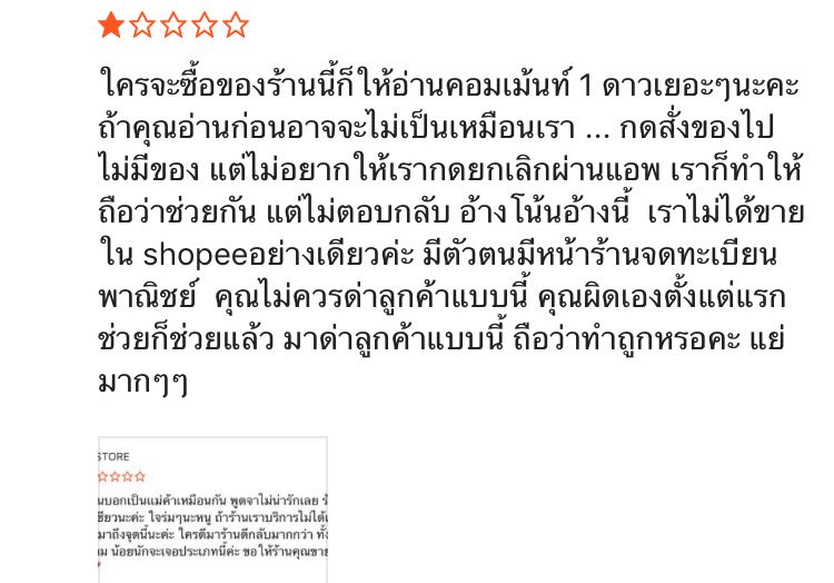 สวัสดีค่ะ ตามหัวข้อเลยค่ะ ที่จริงก็ได้ใช้บริการ Shopee หลายครั้งก็ได้รับการบริการดีเป็นส่วนมาก บางร้านส่งเสื้อมาให้ไม่ได้เช็คก็มีขาดบ้าง ทางร้านโทรมาขอโทษเองเราก็ไม่ได้อะไร ถือว่าประทับในการใส่ใจหลังการขาย แต่บางร้านนี่แย่มาก คนด่าเยอะมากแต่ก็ยังเปิดร้านแบบนี้ต่อมาได้เป็นปีๆ คนด่าก็ด่าไป