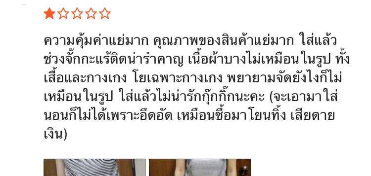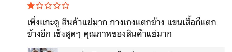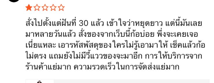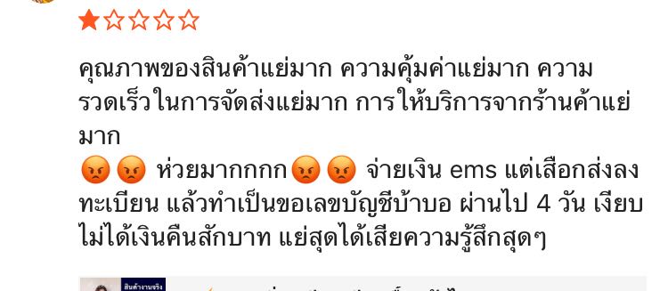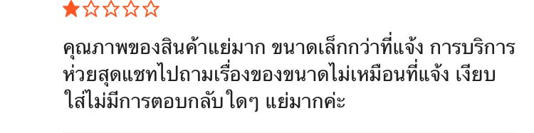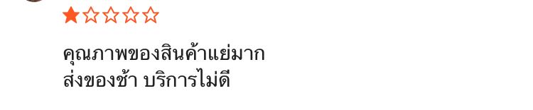 ล่าสุด กดจ่ายตังค์ไปเรียบร้อย ร้านค้าทักแชทกลับมาบอกไม่มีของ แต่ก็ไม่อยากให้เรากดยกเลิกเพราะจะเสียเครดิต ลองไปอ่านคอมเม้นท์ 1 ดาวดู มีปัญหาเยอะมากทั้งเรื่องคุณภาพและการบริการ