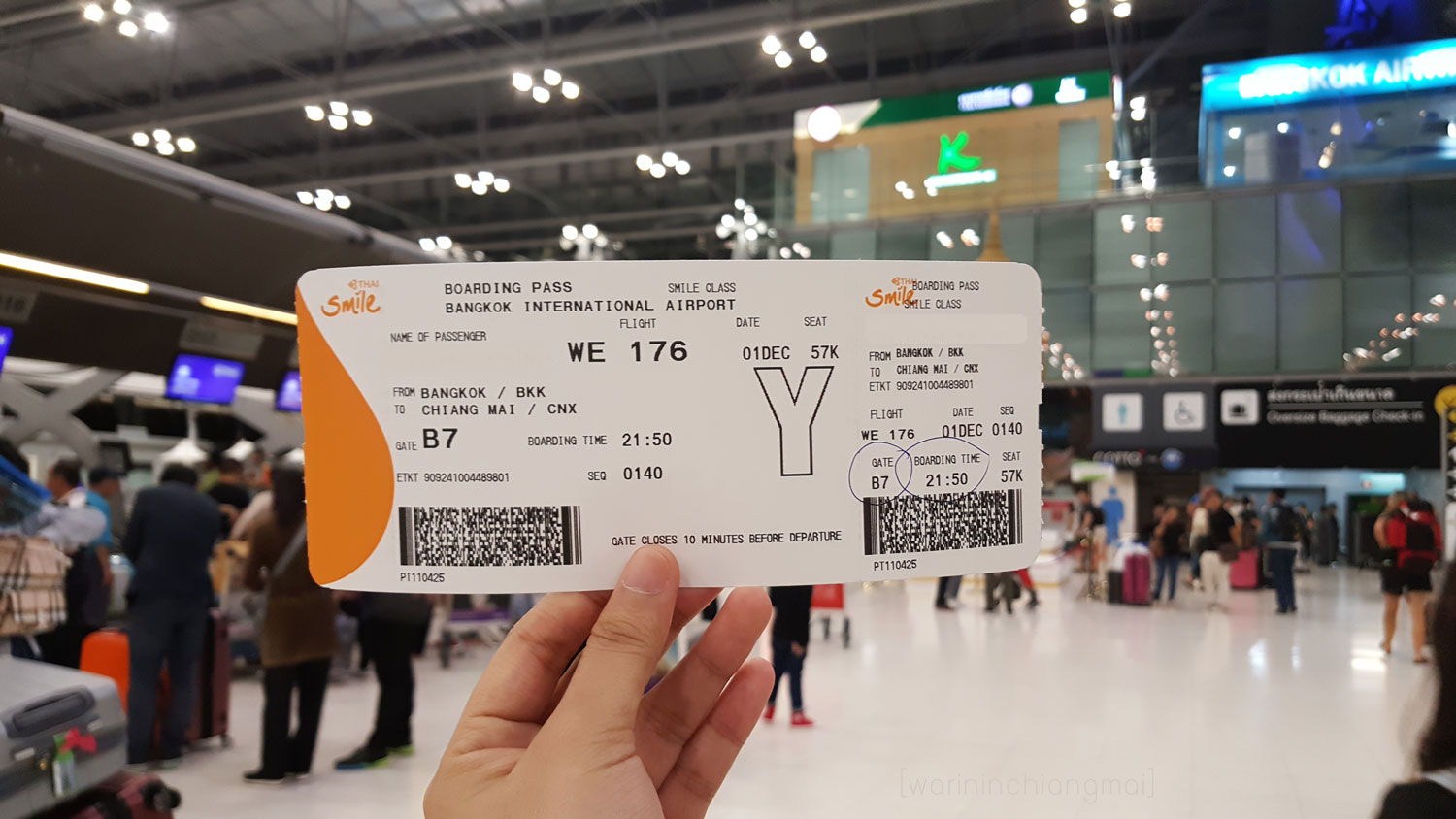เนื่องจากเราได้ตั๋วเครื่องบินของไทยสมายล์ เราจึงได้ขึ้นเครื่องบินที่สนามบินสุวรรณภูมิ ไฟท์บิน 21.50 น. ซึ่งเราไปถึงกันก่อนเวลาเร็วมากจึงมีเวลาหาข้าวกินก่อน แต่ก็กระซิปว่าราคาสูงอยู่ หลังจากกินข้าวทำธุระส่วนตัวกันเสร็จเราก็ไป Check In กันเล๊ยยยยยยยย
