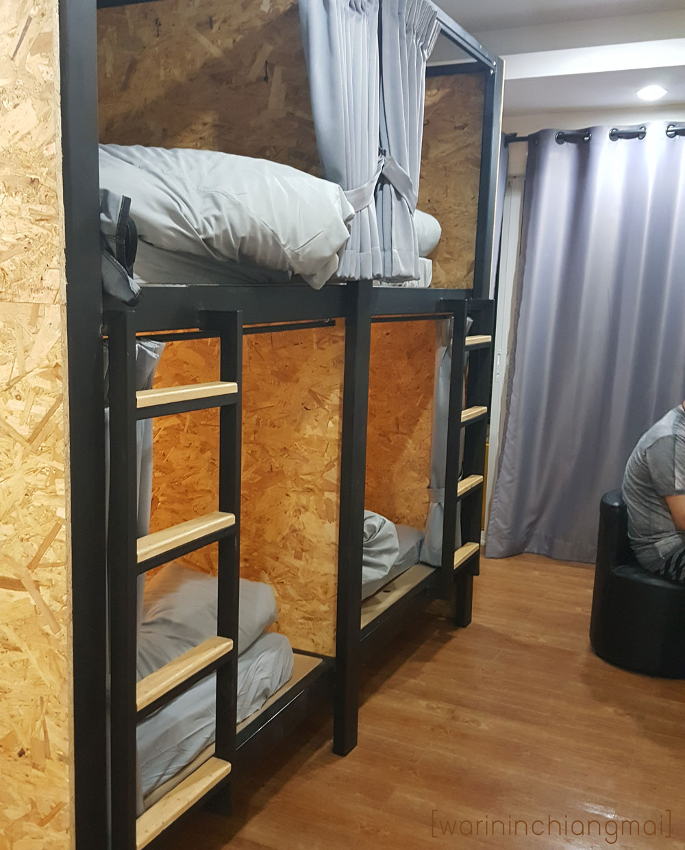 และนี่ก็คือที่พักคืนแรกของเรา เป็นห้องส่วนตัวสำหรับ 4 ท่าน เตียง 2 ชั้น หัวเตียงมีไฟส่วนตัว และปลั๊กไฟส่วนตัว ภายในห้องมีน้ำดื่มให้ 2 ขวด ผ้าขนหนู 4 ชุด แอบกระซิปพี่เจ้าของใจดี และหล่อด้วย 55+
