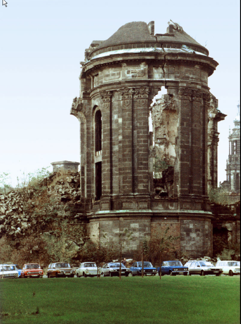 นี่คือโบสถ์ Frauenkirche เป็นโบสถ์ประวัติศาสตร์อายุกว่า 250 ปี ของคริสต์นิกายโปรแตสแตนท์นิกายลูเธอแลนท์อายุกว่า 250 ปี ในแคว้น Sachsen ของเยอรมันตะวันออก ถูกทำลายอย่างสิ้นเชิงในช่วงสงครามโลกครั้งที่ 2 ก่อนสงครามเลิกไม่กี่วันโดยถูกบอมบ์ทำลายจากกองทัพอากาศอังกฤษและอเมริกา หลังจากสงครามยุติ มีความคิดที่จะบูรณะกลับคืนมาหลายครั้งแต่รัฐบาลเยอรมันตะวันออก ไม่มีเงินที่จะบูรณะกลับมาใหม่จึงประกาศให้เป็นอนุเสาวรีย์แห่งสงครามโลกครั้งที่ 2 แทน
