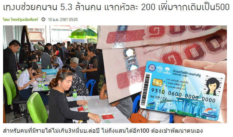 เทงบช่วยคนจน 5.3 ล้านคน แจกหัวละ 200 เพิ่มจากเดิมเป็น500 ..