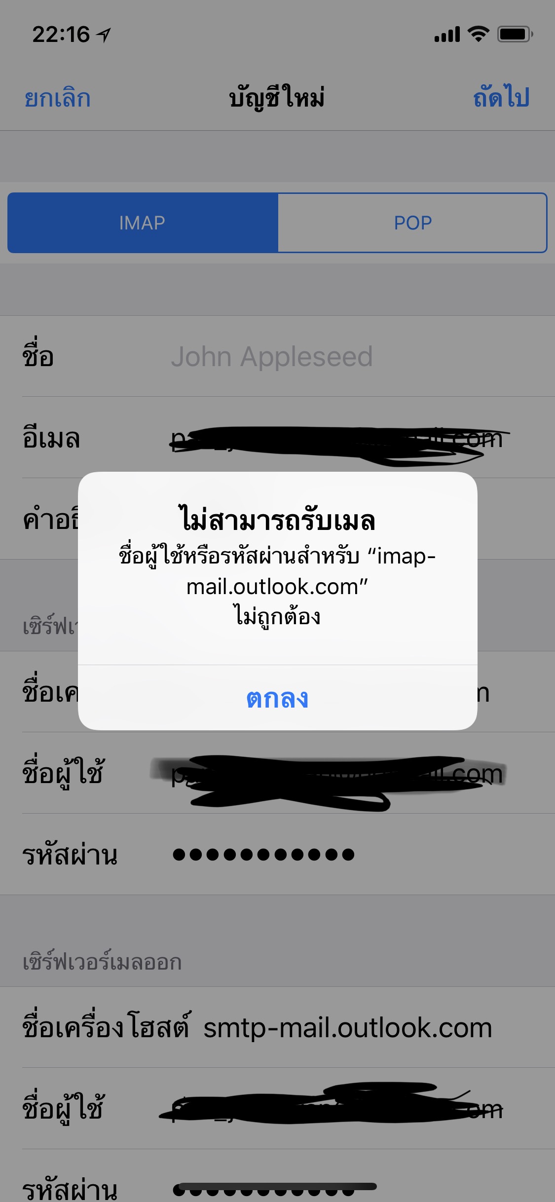 set hotmail แบบ imap ใน iphone แต่ connect ไม่ได้