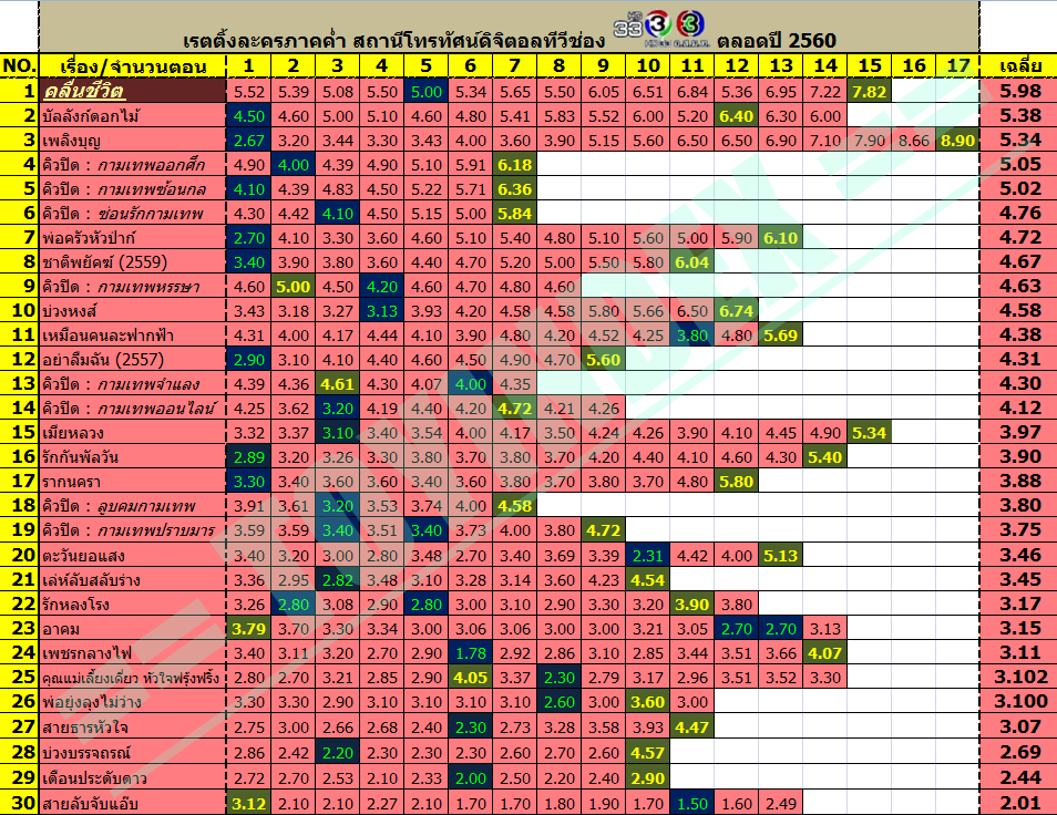 ละครของอ๊อฟพงษ์พัฒน์ จากนาคีเรตติ้ง 17 (2559) สู่รากนครา เรตติ้งลำดับที่ 17 (2560)