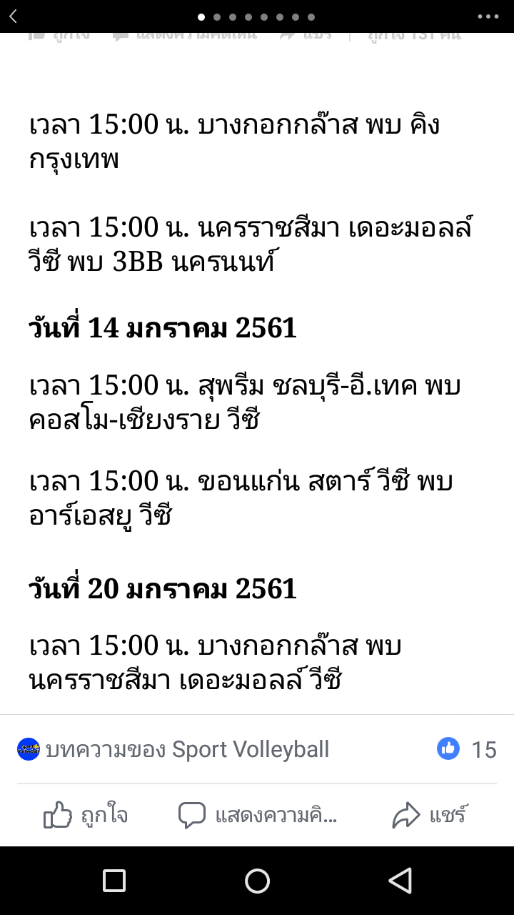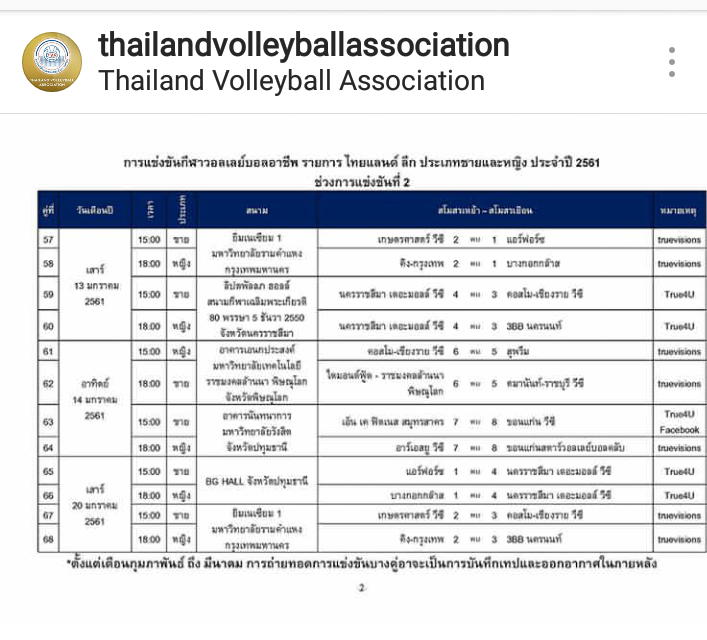 ใครมีตารางแข่งขันวอลเลย์บอลไทยแลนด์ลีกเลก2บ้าง