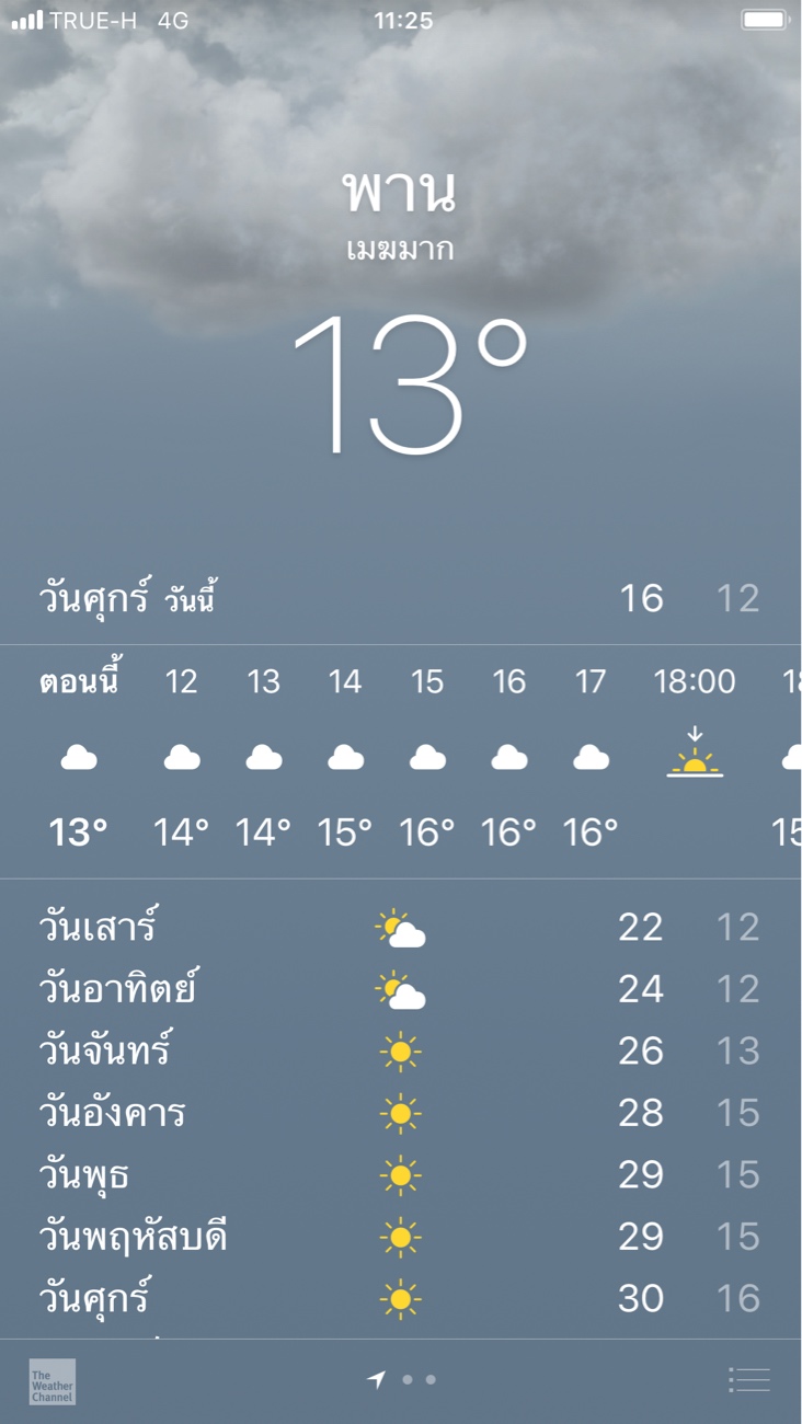 อุดรธานี เช้าวันเสาร์ (ในพยากรณ์จะเขียนเป็นวันศุกร์ แต่มันคือเช้าวันเสาร์) อุดรธานีจะเจออุณหภูมิ 15 องศา พร้อมความเร็วลมที่น่าจะแรงพอสมควร ในขณะที่เชียงใหม่ เย็นสุดจะอยู่ที่ 18 องศา ในตอนเช้า