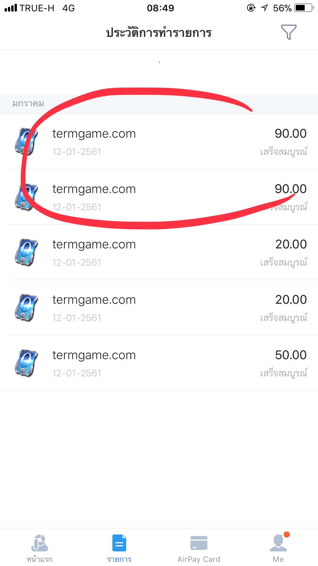 พอมาเติม 90บาท ครั้งที่1 ไม่เข้า ลองกดเติมอีก ครั้งที่2 ก็ไม่เข้า