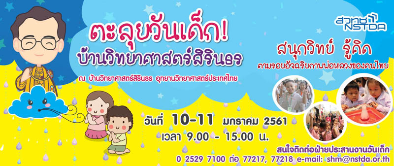 ที่สุดท้ายที่เราจะพาน้องๆ หนูๆ ไปสนุกกันในวันเด็ก กับบ้านวิทยาศาสตร์สิริธร อุทยานวิทยาศาสตร์ ภายในงานจะได้พบกับกิจกรรมวิทยาศาสตร์ พร้อมรับของรางวัลสุดพืเศษมากมาย