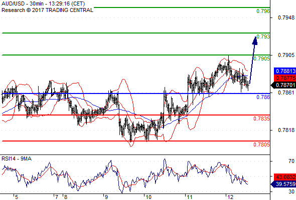 จุดที่ต้องการ: สถานะซื้อสูงกว่า 0.7860 เป้าหมายต่อไปที่ 0.7905 และ 0.7930