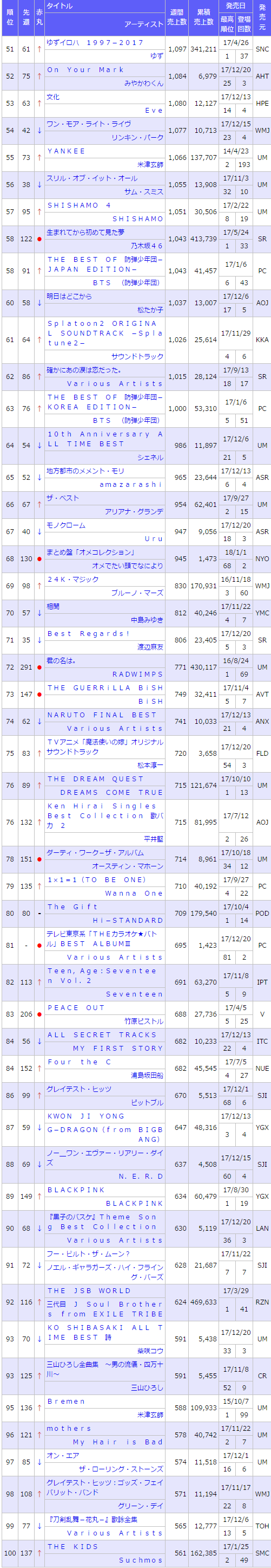 7. [↓3] EGOIST – GREATEST HITS 2011-2017 "ALTER EGO": 11,932 [รวม 2 สัปดาห์รวม 59,969แผ่น]