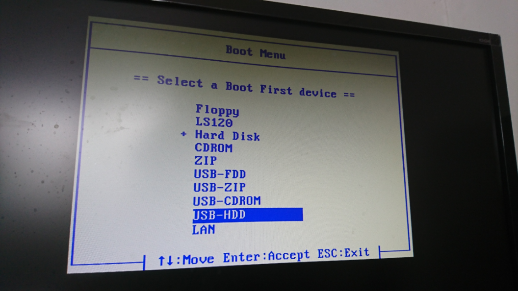 ถ้าเลือกอันอื่น จะเข้าสู่ windows ตามปกติ แต่ถ้าเลือก usb-hdd จะขึ้นแปลกกว่าอันอื่นดังรูปด้านล่าง ต้องรีคอมใหม่เท่านั้น ถึงจะออกจากหน้านี้ได้