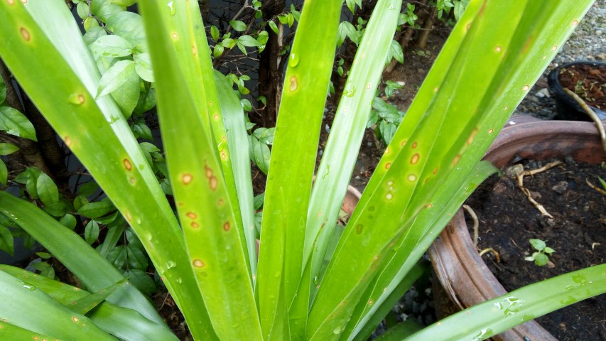 แต่ต้นนี้ (ตามรูป) เป็นจุด ๆ ที่ใบ ดูแล้วไม่งามเลย ตอนต้นเล็ก ๆ ไม่เป็นอะไร มาเป็นตอนหลัง ๆ นี่ครับ